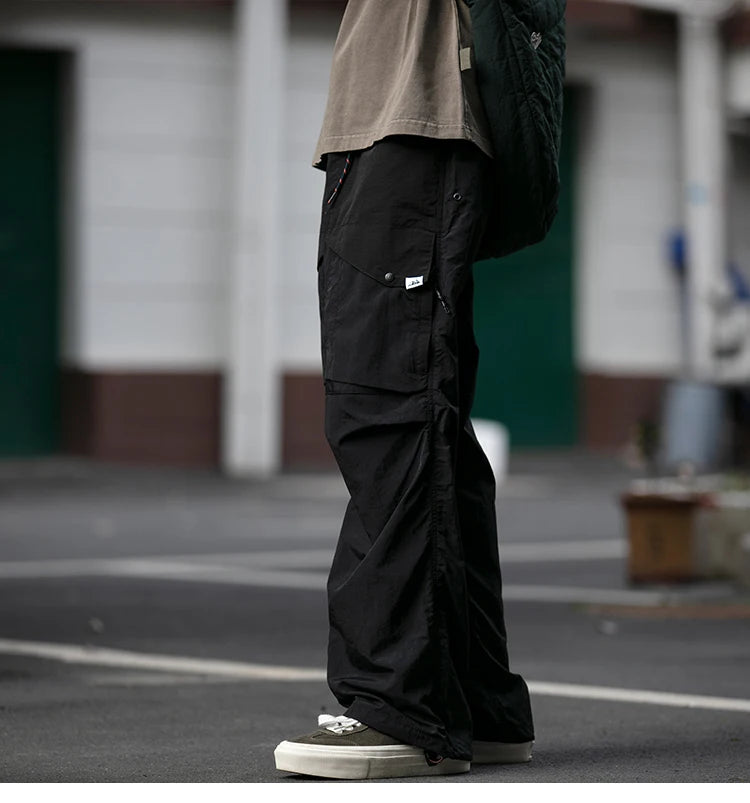 These Waterproof Nylon Cargo Pants combine durability and comfort, perfect for spring and summer outdoor activities. Designed with breathable fabric and a functional waterproof finish, they keep you dry while ensuring ventilation. Multiple cargo pockets offer convenient storage, making them ideal for casual wear or active adventures. Embrace the sleek Harajuku style with these versatile joggers that enhance your look without sacrificing practicality.